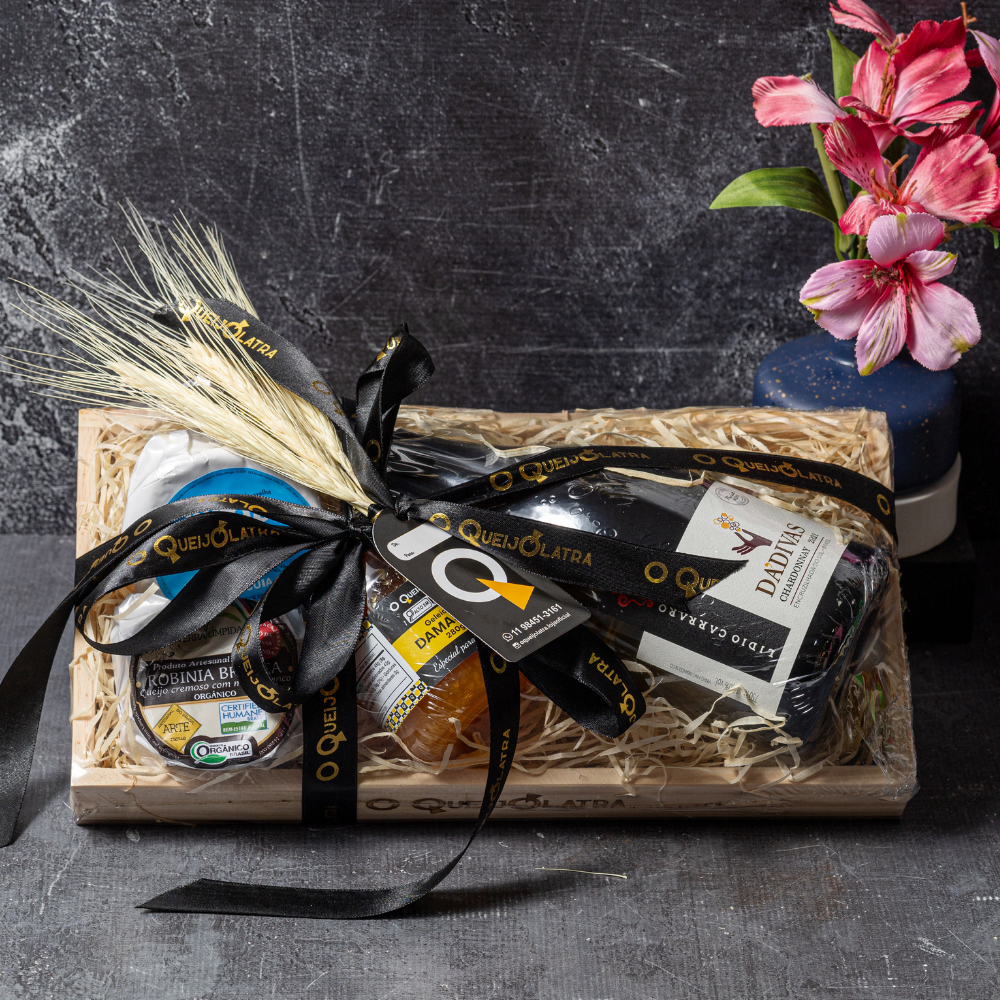 CESTA DE PRESENTE – 2 QUEIJOS + VINHO BRANCO + GELÉIA